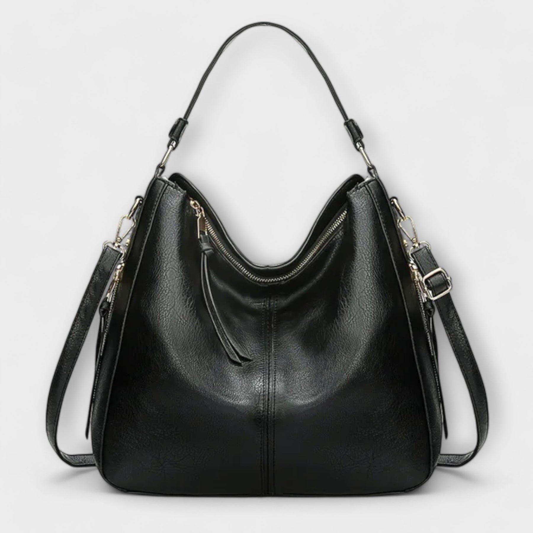 Saskia™ presenta un diseño práctico con doble cierre, ideal para quienes valoran el orden sin renunciar a la elegancia. Su estructura y líneas refinadas crean una silueta clásica, atemporal y femenina.